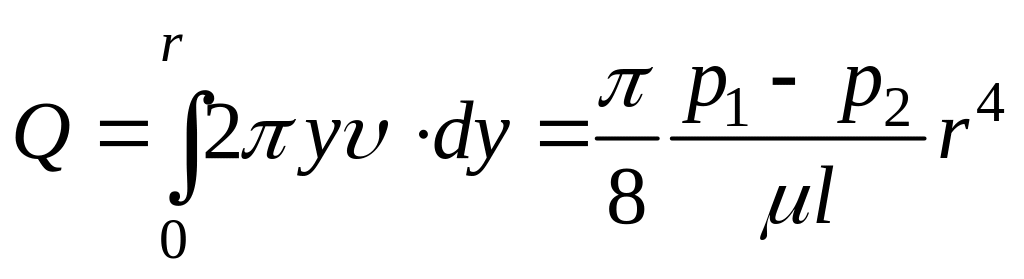 Интегрируя формулу (81) по поперечному сечению потока, получим формулу Пуазейля для определения секундного расхода Q жидкости: