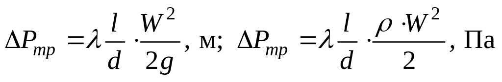 Уравнение (85) может быть использовано при любых режимах течения жидкости и записывают его в виде формулы Дарси- Вейсбаха:
