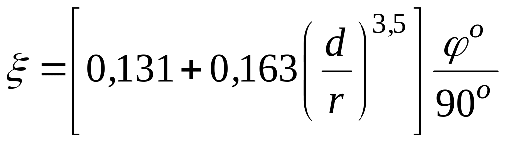 Для закруглений трубопровода с углом поворота ° коэффициент можно определить по формуле Вейсбаха: