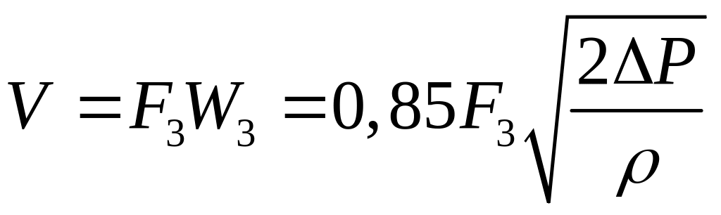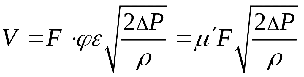 Объемный расход газа найдем, если умножим скорость на сечение отверстия с учетом коэффициента сужения струи ε и коэффициент скорости φ