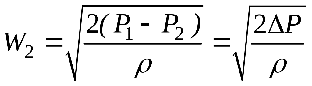 Решая уравнение Бернулли относительно скорости для нашего случая, получим: