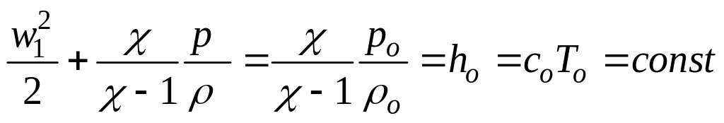 Основные формулы адиабатного течения идеального газа.