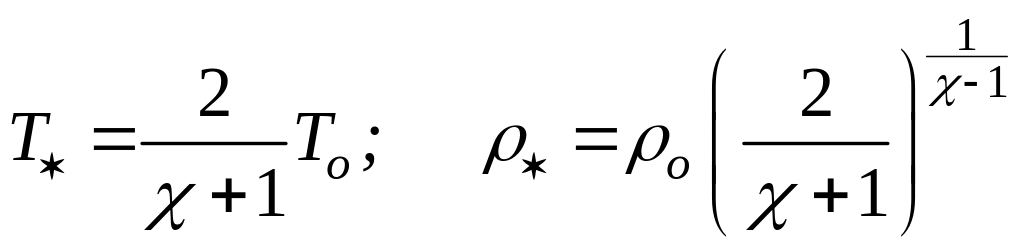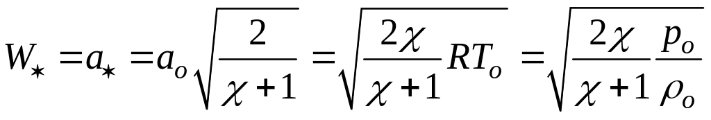 т. е. что при ускорении газа скорость звука в нем уменьшается . Следовательно, поток можно разогнать настолько, что его скорость станет равной скорости звука. Такая скорость w* называется критической, а все параметры газа с критической скоростью - критическими параметрами.