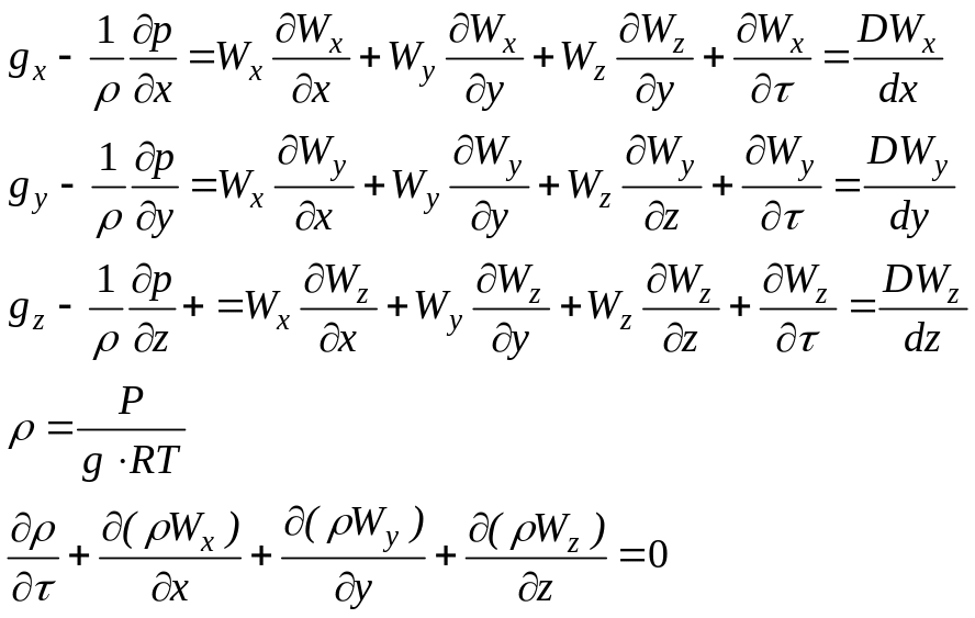 Обозначим через Wх, Wу, Wz проекции скорости на оси координат.