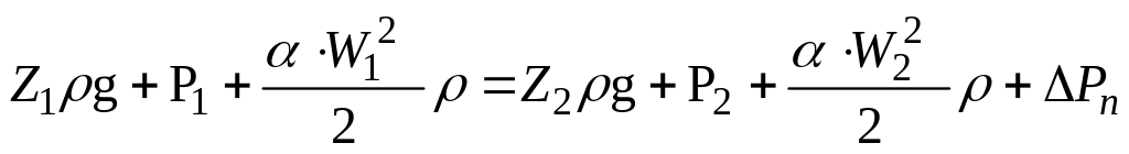 Обозначим потерянную на рассматриваемом участке энергию, отнесенную к 1 м3 движущейся реальной среды, через Δ Рп . Тогда уравнение Бернулли, написанное для двух сечений реальной жидкости, будет иметь вид