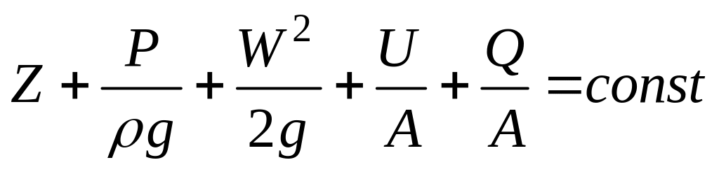 Здесь: z -геометрическая высота (напор), которая выражает энергию положения;