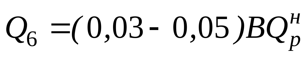 6. Тепло от механической неполноты сгорания. Под механической неполнотой сгорания понимают различные потери топлива. Например, при сжигании твердого топлива потери составляют 3-5 %, следовательно: