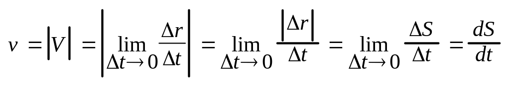 мгновенная скорость есть векторная величина равная первой производной радиуса-вектора по времени модуль мгновенной скорости -