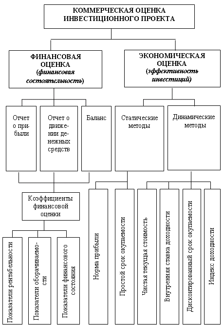 При расчете коммерческой эффективности в качестве эффекта выступает поток реальных денег. При осуществлении инвестиционного проекта выделяется три вида деятельности: инвестиционная, операционная и финансовая. В рамках каждого вида деятельности происходит приток и отток денежных средств. Потоком реальных денег называется разность между притоком и оттоком денежных средств от инвестиционной и операционной деятельности в каждом периоде осуществления проекта. Коммерческая эффективность включает в себя два вида оценок: финансовую и экономическую (рис. 4).