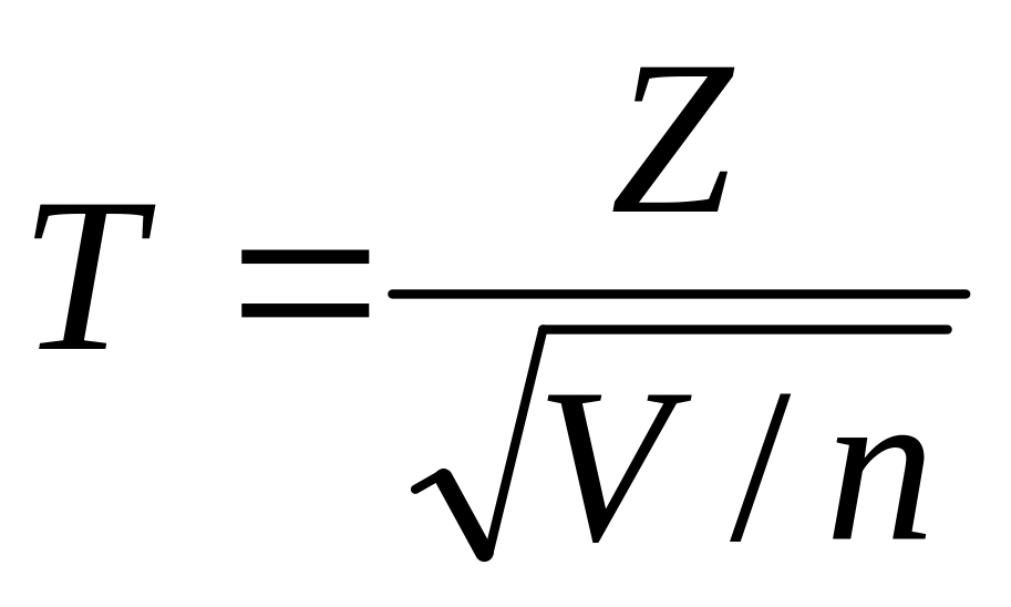 Пусть Z – случайная величина, имеющая нормальное распределение N(0,1), а V – независимая от Z случайная величина, распределенная по закону 2 с n степенями свободы. Введем случайную величину