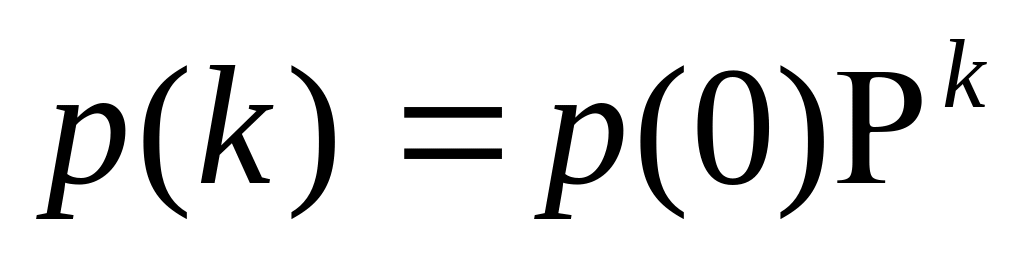 Введем pi(k) как вероятность того, что на k-м шаге система будет находиться в состоянии si,. Тогда матрица - строка p(k) = ( p1(k); …; pn(k) ) является матрицей состояния системы на k-м шаге. Для однородной цепи Маркова имеет место следующая формула: