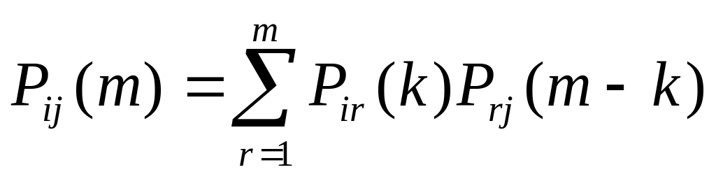 Пусть Рij(m) - вероятность того, что в результате m испытаний (шагов) система перейдет из состояния i в состояние j (если m=1, то Pij(1) = pij). По формуле полной вероятности (с использованием вероятностей перехода в промежуточное состояние Pij(m) имеем формулу: