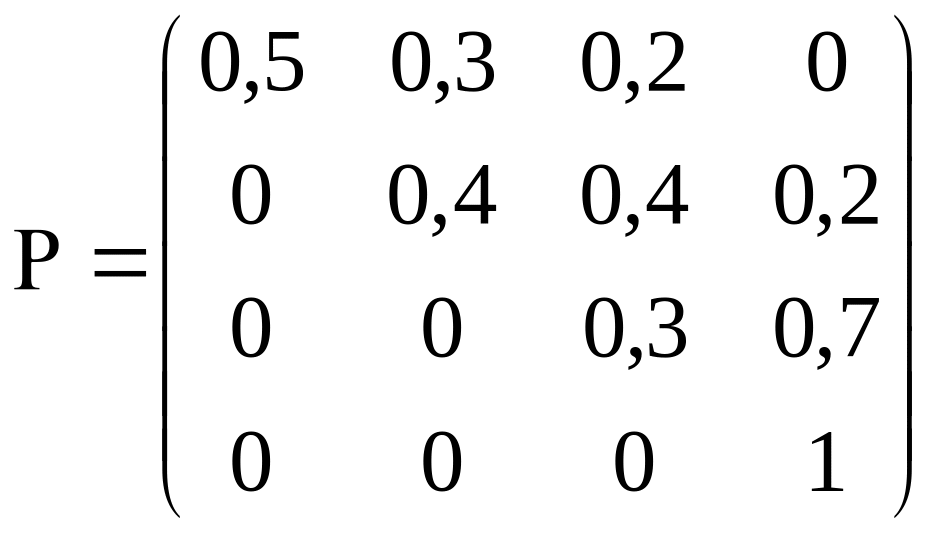 Очевидно, что матрица вероятностей перехода за 2 шага может быть получена умножением матрицы (6.2.2) на себя: