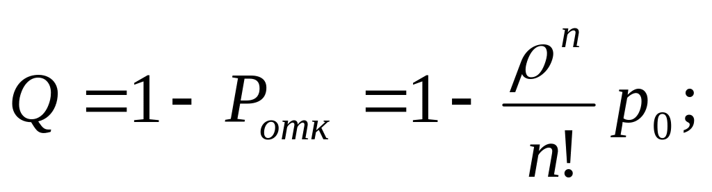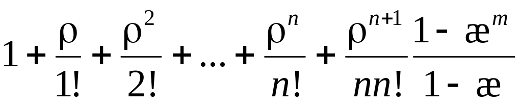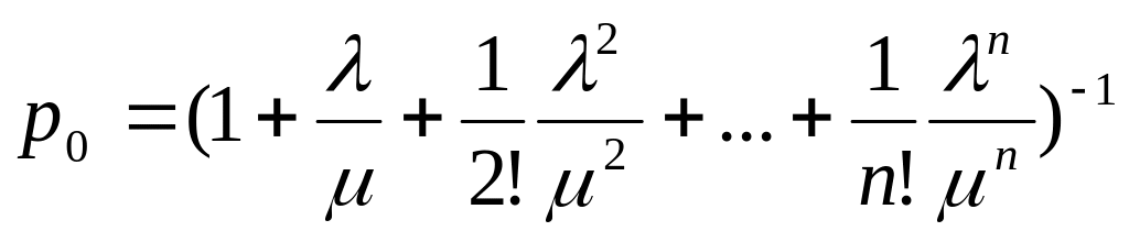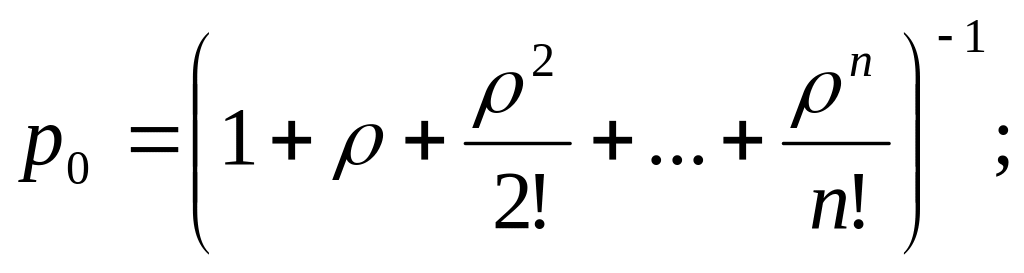 p0=(1+ ρ + ρ2/2! + … + ρn/n! + ρn+1/(n n! (1-æ)))-1, ρ = λ/μ, æ = ρ/n < 1;