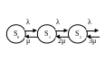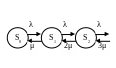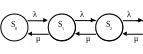 λp0 = μp1; (λ+μ) p1 = λp0 + 2μp2; (λ+2μ) p2 = λp1+ 3μp3; …; (λ+nμ) pn = λpn-1 + nμpn+1;