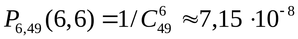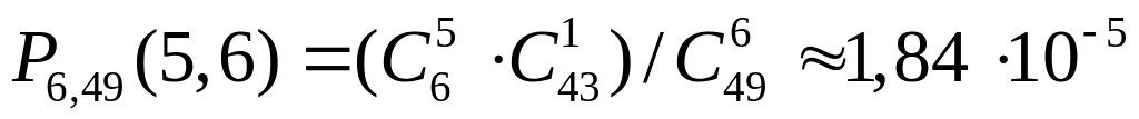 Задача о выигрышах в «Спортлото 6 из 49». Найти вероятность выигрыша на 1 билет на 5 или 6 видов спорта.