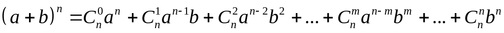 Числа называются также биномиальными коэффициентами, так как они являются коэффициентами в разложении бинома Ньютона, определяющего результат возведения бинома (двучлена) а + b в n-ю степень и имеющего вид