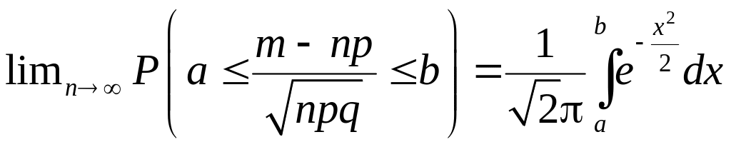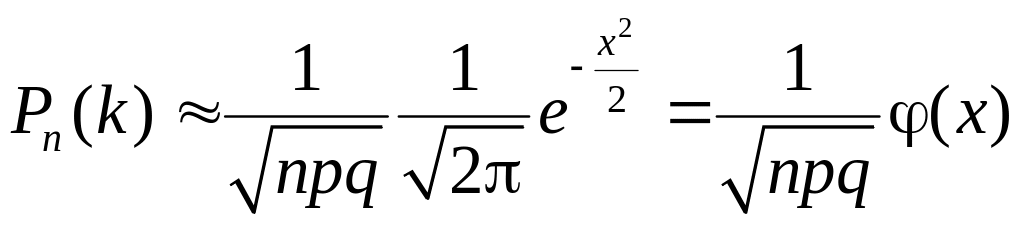 Поэтому возникает необходимость в асимптотических формулах, позволяющих с достаточной степенью точности определить эти вероятности. Впервые такая формула была найдена А. Муавром для частного случая p=q=1/2, а затем обобщена П. Лапласом на случай произвольного p, отличного от 0 и 1. Этот результат носит название локальной теоремы Муавра-Лапласа.
