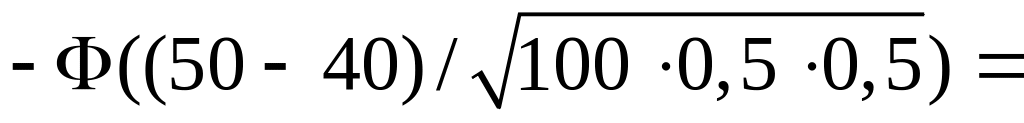 – Ф(–2) = 2Ф(2) ≈ 2∙0,4772 = 0,9544 (значение Ф(2)