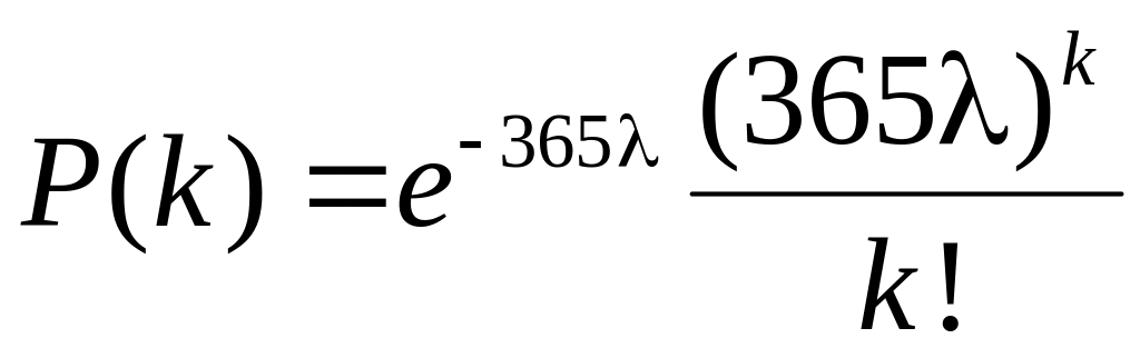 Здесь λ – ожидаемое (среднее) число требований в единицу времени (например, за 1 день). Тогда вероятность того, что в течение года появится ровно k требований равно