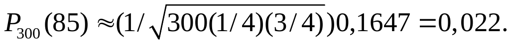 Задача 1.8.3. Вероятность успеха в каждом испытании равна 1/4. Какова вероятность того, что при 300 испытаниях успех наступит ровно 85 раз?