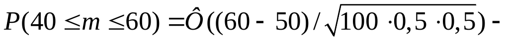 Задача 1.8.5. Какова вероятность того, что при 100 бросаниях правильной монеты герб появится от 40 до 60 раз?