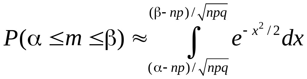 1. В серии из n испытаний с вероятностью успеха в каждом испытании р требуется найти вероятность того, что число успехов будет заключено между заданными числами α и β, 0α<βn. Имеем