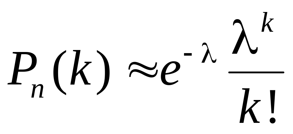 Следует заметить, что формула (1.8.4) непригодна (дает слишком большую погрешность), если вероятность события мала (р 0,1). При больших n и малых p используют асимптотическую формулу Пуассона