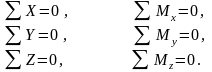 Сыртқы күштердің әсерінен пайда болған денедегі серпімді деформация дененің өлшемдеріне қарағанда әлдеқайда аз, сондықтан, дененің бөліктері үшін теориялық механиканың келесі тепе-теңдік теңдеулерін қолдануға болады