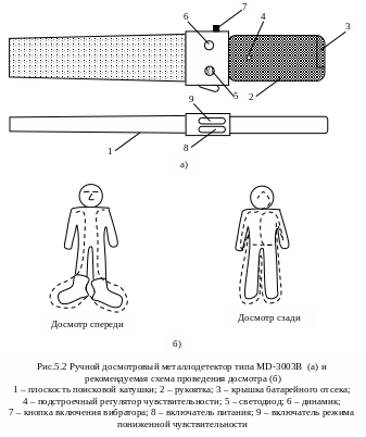 Досмотровый металлодетектор типа MD-3003B предназначен для обнаружения незаявленных металлических предметов, которые предназначены для применения против людей или судов, таких как огнестрельное и холодное оружие, взрывчатые вещества (гранаты, снаряды, бомбы, мины) и прочие опасные вещества и устройства, на перевозку которых нет полномочий (рис.5.2).