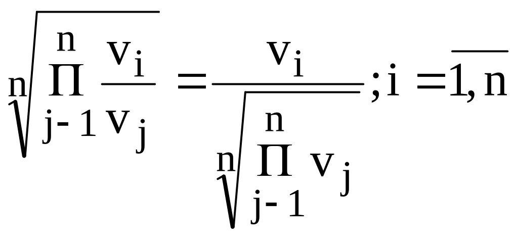 3. Розділимо середнє геометричне кожного рядка R на суму середніх геометричних рядків: