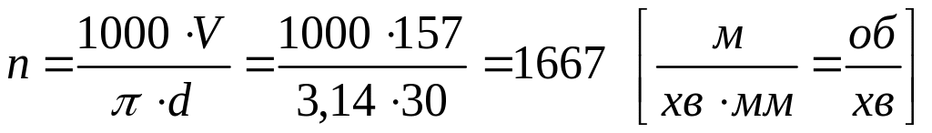 За значенням швидкості різання визначається швидкість обертання (об/хв.) шпинделя: