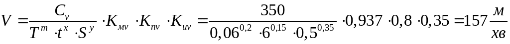 отримую швидкість різання V=116м/хв=1,93м/с.