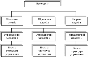 Дивізіональна організаційна структура управління належить до практики корпоративного управління, коли керована організація відноситься до розряду великих і найбільших за масштабом виробництва, чисельності працюючих, а також характеризується різноманітністю продукції та великою місткістю ринків її збуту. Основою формування структури цього типу є виділення в складі організації практично самостійних виробничих відділень – “дивізіонів”.