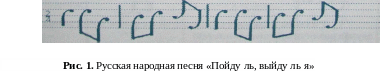 На рис. 4 приведен пример ритмической фигуры музыкального отрывка, а в табл. 1. представлены два варианта одной и той же двигательной композиции с учетом и без учета ритмической фигуры отрывка. Как видно, учет особенностей ритмической фигуры позволяет обогатить двигательную композицию.