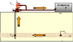 В пласте движение жидкости определяется депрессией между гидродинамическим забойным давлением и пластовым давлением.