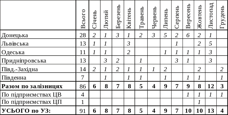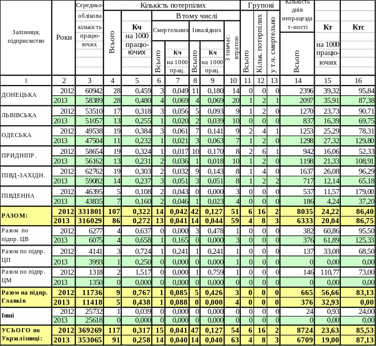 - •2. Аналіз виробничого травматизму на залізницях та підприємствах, що підпорядковані Укрзалізниці