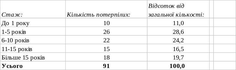 Розподіл потерпілих за загальним стажем