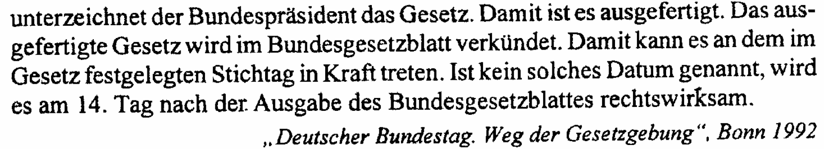Das Grundgesetz sieht folgende Regelung vor: Binnen zwei Wochen nach Eingang des Gesetzbeschlusses kann der Bundesrat verlangen, daß ein Vermittlungsausschuss einberufen wird.