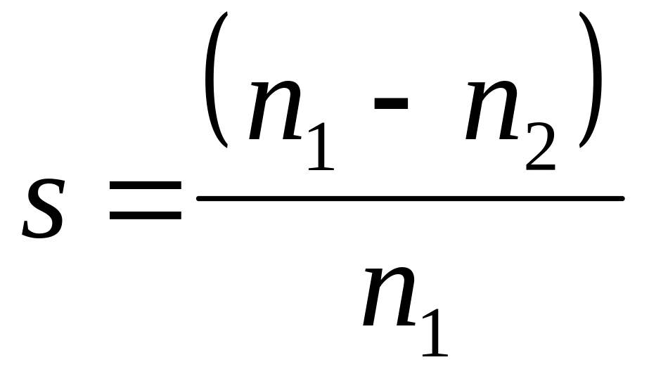 Величина, характеризующая степень отставания ротора от вращающегося магнитного поля статора, называется скольжением и определяется по формуле: