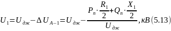 Розрахунок напруг у вузлових точках мережі виконується за формулами: