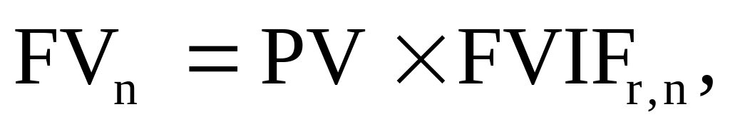 Для облегчения процедуры нахождения показателя FVn предварительно рассчитывается величина множителя (1 + r)n при различных значениях r и n, при этом используется таблица стандартных значений фактора (множителя) будущей стоимости (FVIFr,n). В этом случае FVn определяется по формуле