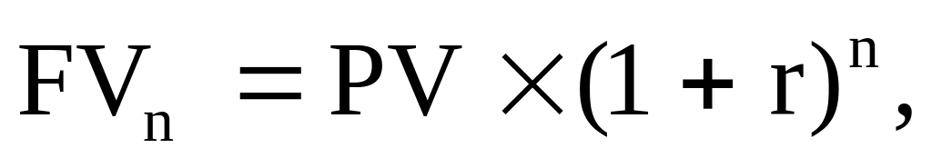 Процесс, в котором при заданных значениях PV и r необходимо найти, величину будущей стоимости инвестированных средств к концу определенного периода времени (n), называют операцией наращения.