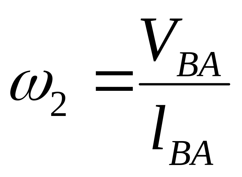 Определить угловые скорости звеньев, имеющих вращательное движение по соответствующим формулам.