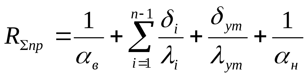 где: n-1 – число слоёв ограждения (кроме утеплителя);