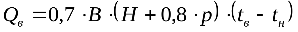 2.2.1.2. Потери тепла на нагрев вентиляционного воздуха , рассчитываются для каждого помещения, в котором есть хотя бы одно окно, по формуле: