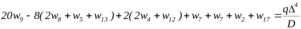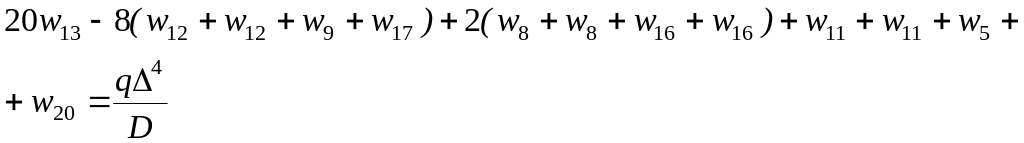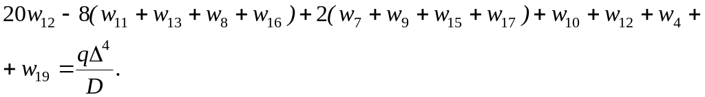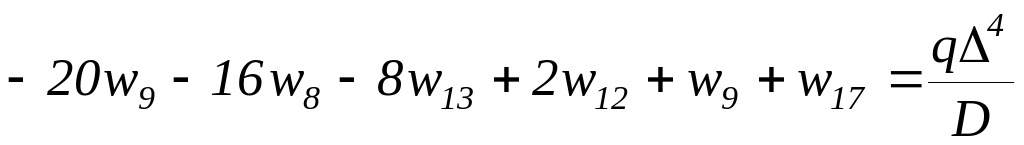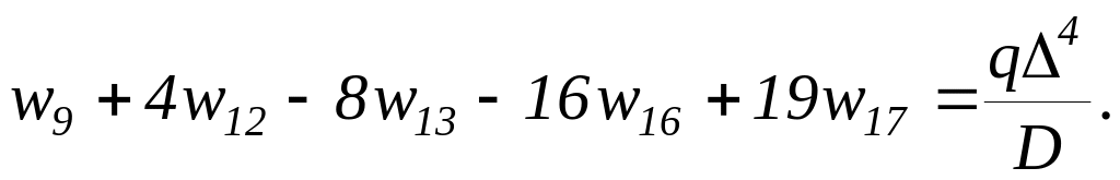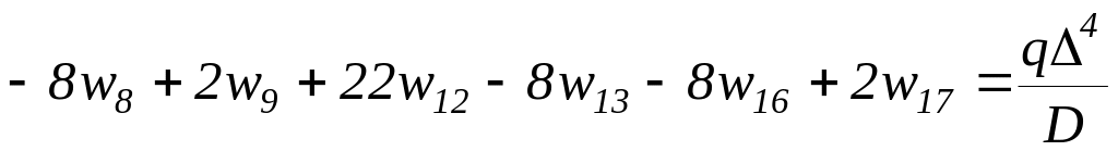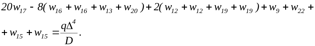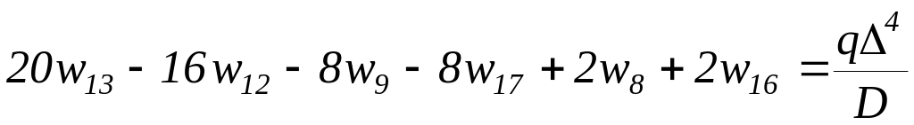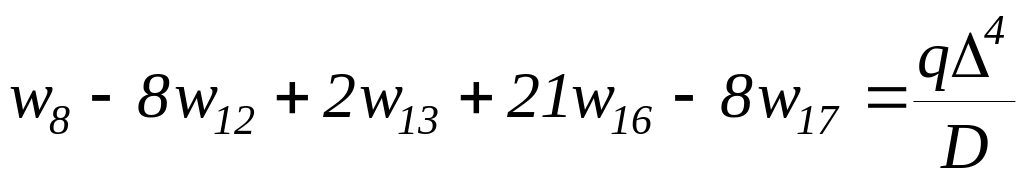 Складаємо основне рівняння згину тонкої плити в скінченних різницях для всіх внутрішніх вузлів різницевої сітки.