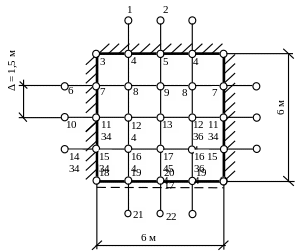 Накладаємо різницеву сітку. Нумеруємо вузли сітки.