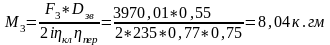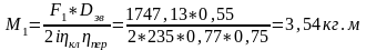 ηпер = 0.75 кпд передачи (нижний предел для самотормозящихся червячных передач)