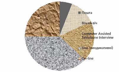 Оn-line1 упевнено лідирує серед кількісних методів, закріпивши за собою чверть світового дослідницького ринку й удвічі випереджаючи звичні для України інтерв'ю віч-на-віч (рис. 4.1). Це зумовлене його об'єктивними перевагами перед традиційними технологіями: вирішенням широкого спектра завдань, орієнтацією на активні, платоспроможні цільові аудиторії й найкоротшими строками. Унікальність Інтернету як каналу передачі інформації полягає в можливості одержання миттєвого зворотного зв'язку від респондента, в організації інтерактивної взаємодії. Не дивно, що особливості цього каналу ведуть до все активнішого використання Інтернету в маркетингу та рекламі, у тому числі і у маркетингових дослідженнях. Обмеження цього способу зменшуються із щорічним збільшенням кількості користувачів світової мережі.
